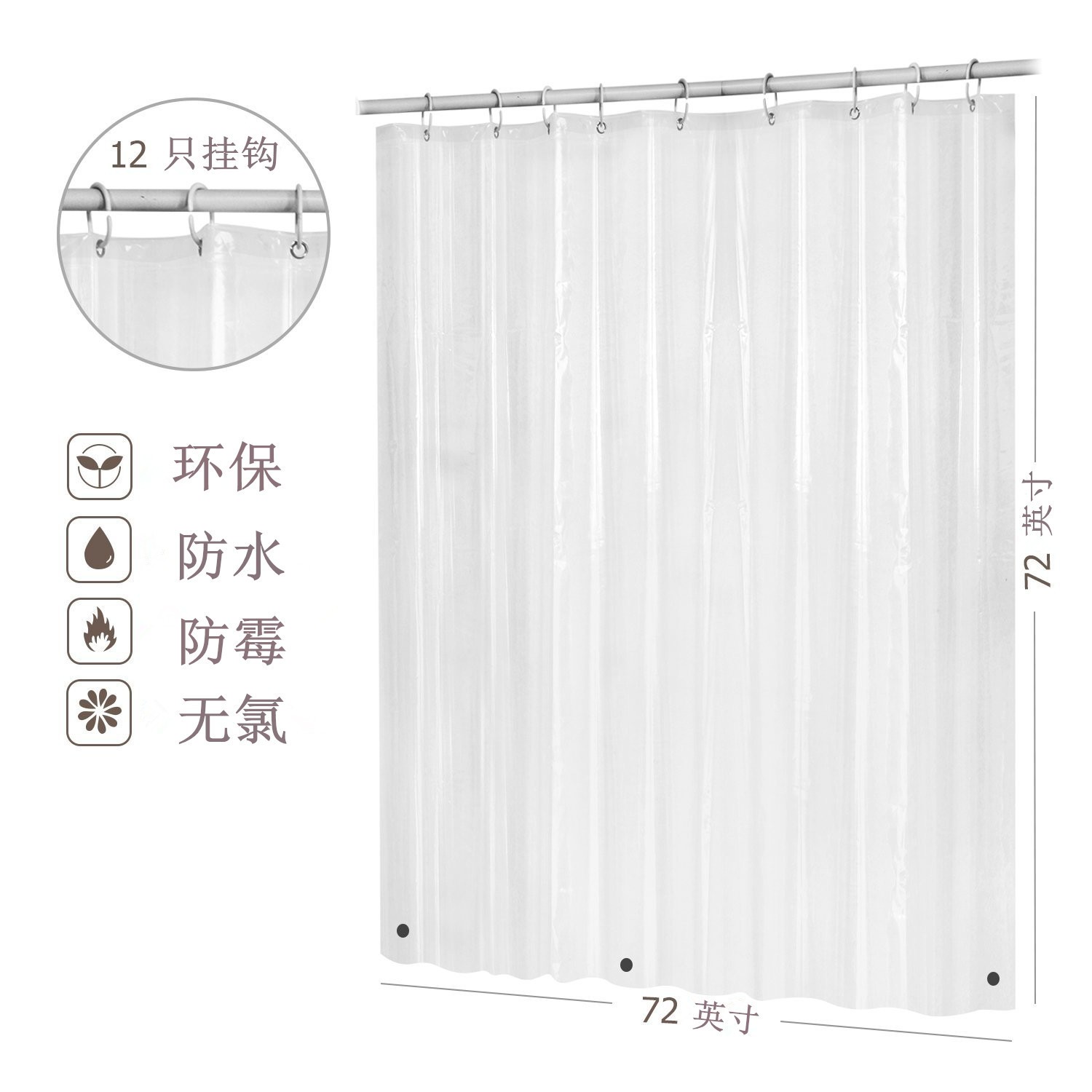 PEVA shower liner transparent color